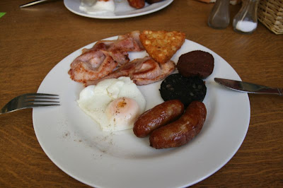 Lendemain, reveil douloureux!! plein de courbatures!! mais qu'on oubliera vite grace a un bon Irish breakfast : saucisses, oeuf, toasts, boudin noir, bacon!!!